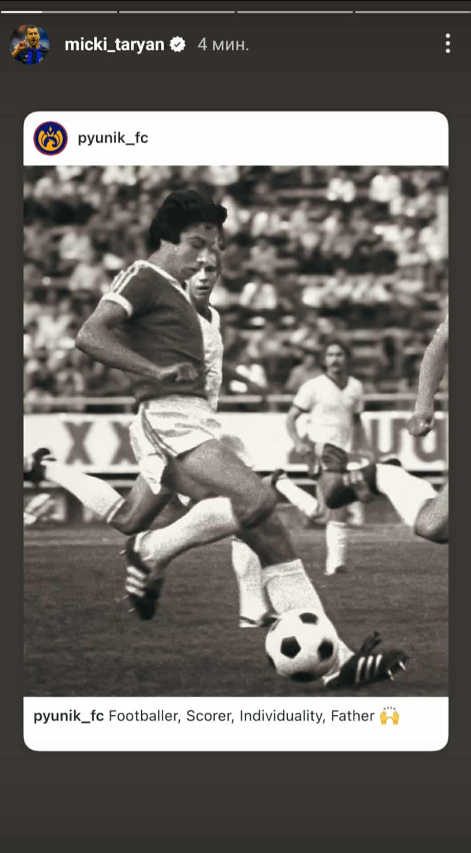 Այս առիթով «Փյունիկ» ակումբը սոցիալական ցանցերում հրապարակել է գրառում՝ կցելով նրա նկարը և գրելով․ «Ֆուտբոլիստ, ռմբարկու, անհատականություն, հայր»։