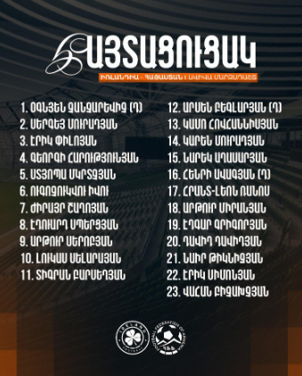 Հայտնի է Հայաստանի ազգային հավաքականի վերջնական հայտացուցակը Հունգարիայի դեմ խաղում