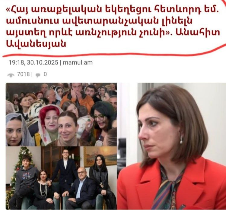 Անո, մարդուդ եկեղեցու բարքերը բերու՞մ ես ՀԱԵ...Այդ նրանց մոտ է ընդունված, որ փողոցից եկածը կարող է եկեղեցու գործերին խառնվել...